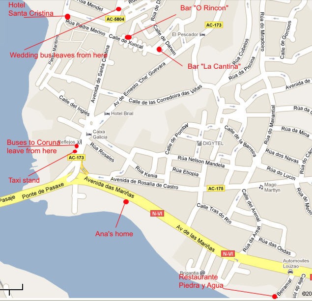 Not really. You won’t have to worry about transportation the day of the wedding since we’ll have a minibus for our guests to go from the ceremony to the reception venue. The pick-up location will be in front of Santa Cristina Hotel at Santa Cristina Beach. For the rest of the days, you can get around by foot in Perillo and Coruña, and use buses or taxis to get from one place to another. Please let us know if you need to know taxi stand or bus stop locations.
